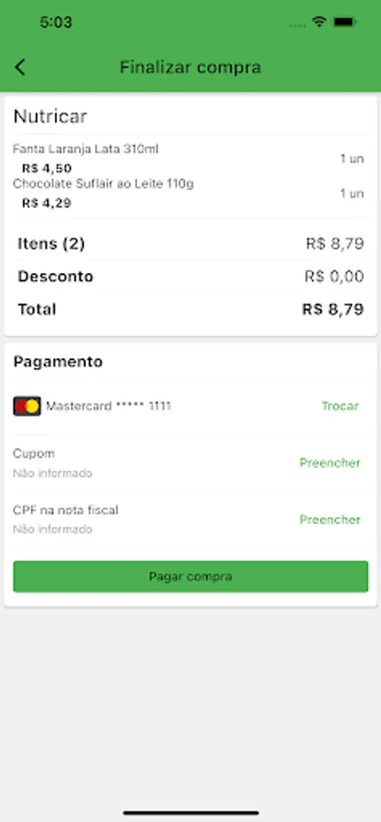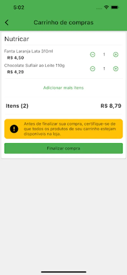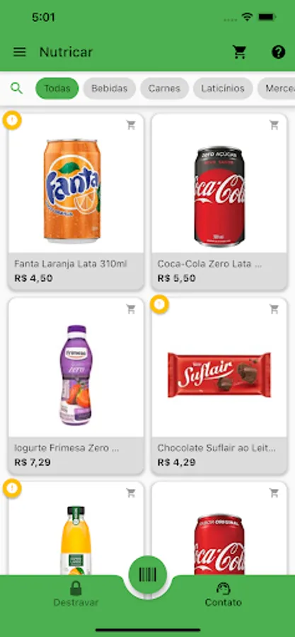 Nutricar is an application created to make purchases in micromarkets, which are self-service convenience stores available in residential condominiums or companies.