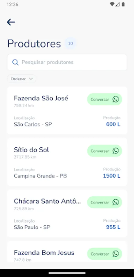 With the Busca Produtores application, you can register new producers for your dairy and view the main information of producers in your region in an easy and convenient way.