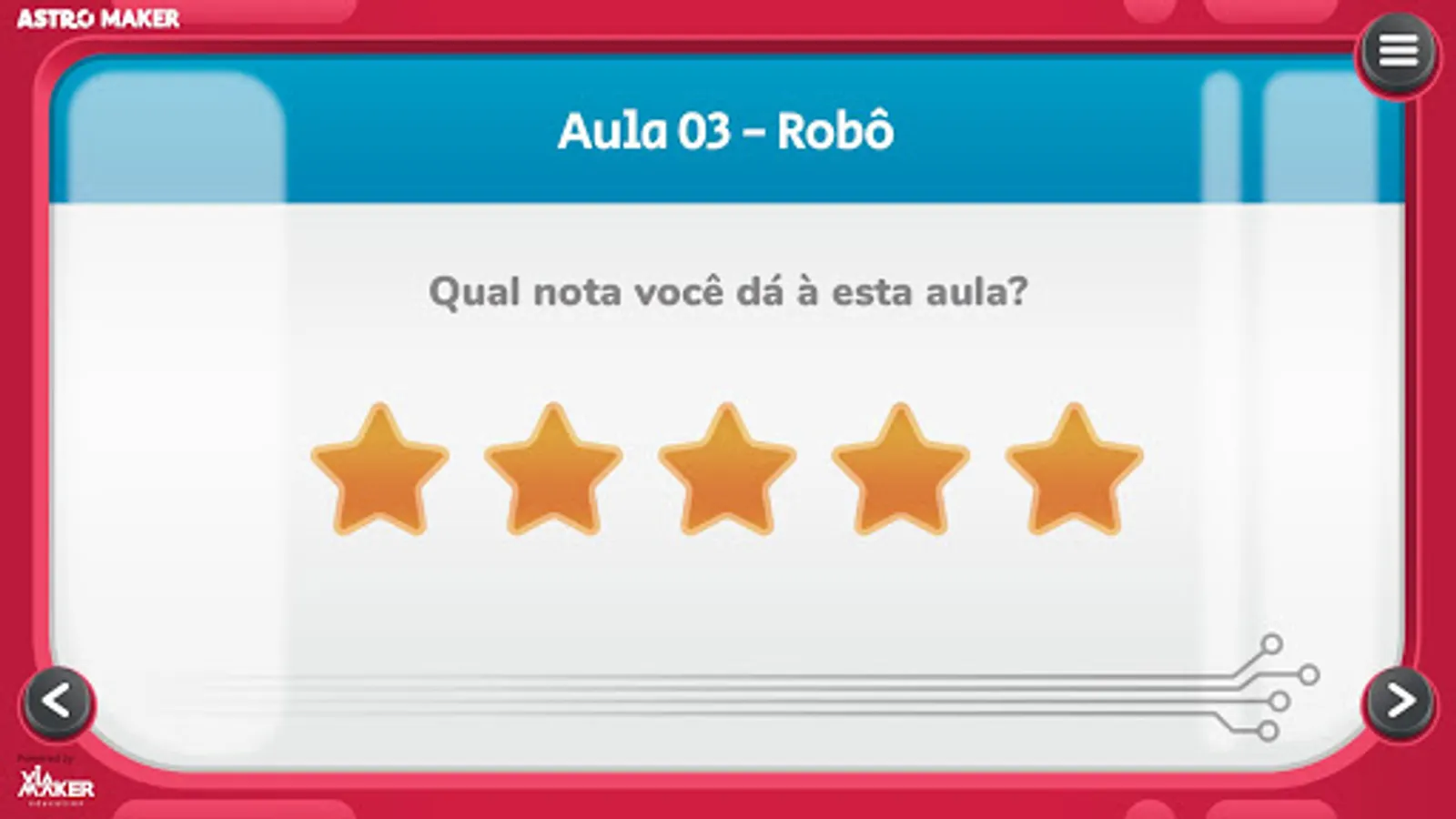 Application developed to be used as a technological resource in classes of technological education and educational robotics of ASTROMAKER, curricular program of VIAMAKER Education. This digital platform is aimed at students, and has resources that enrich and support classes in accordance with the program's methodology, such as: