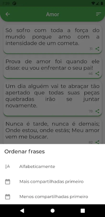 NOTE: Some social networks do not accept direct sharing, so you can copy the phrase and paste in the social network in these cases.