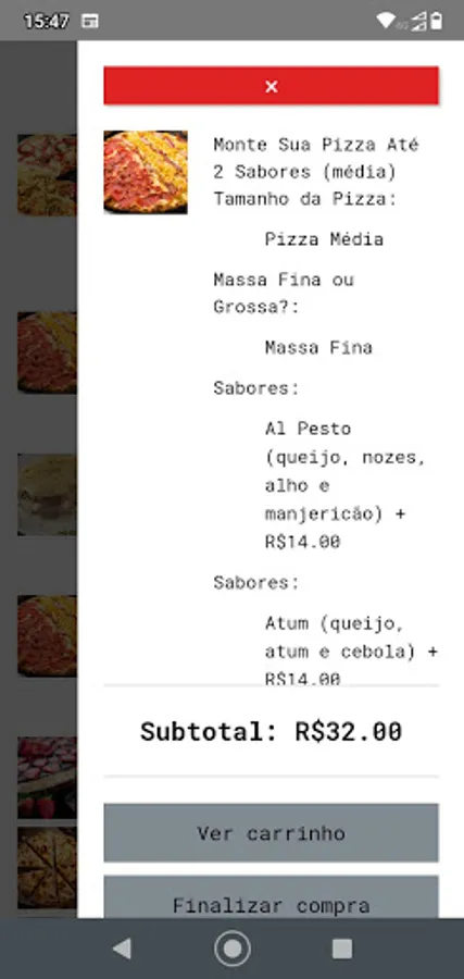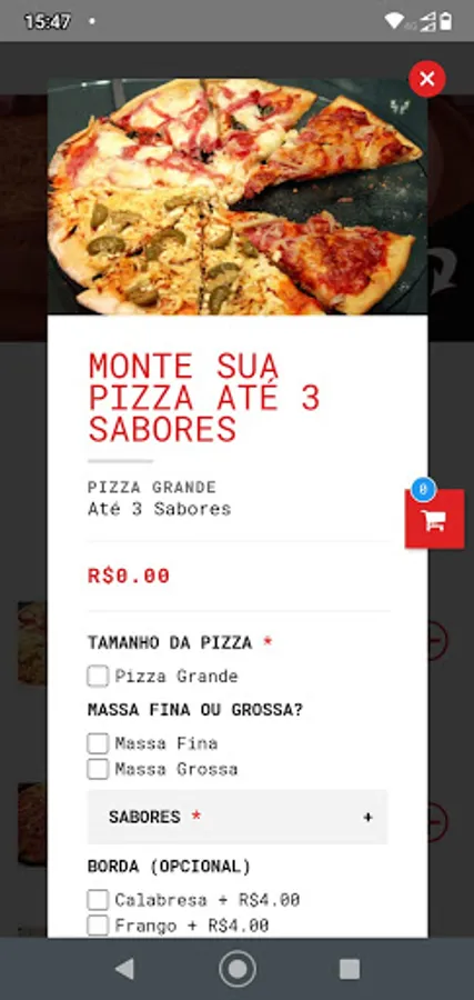 In the app you can assemble your pizza the way you like it, pizza with 3 flavors, pizza with 2 flavors or even with 1 flavor. You have options to also choose the size with or without border, it is a delight with quality and a champion price.