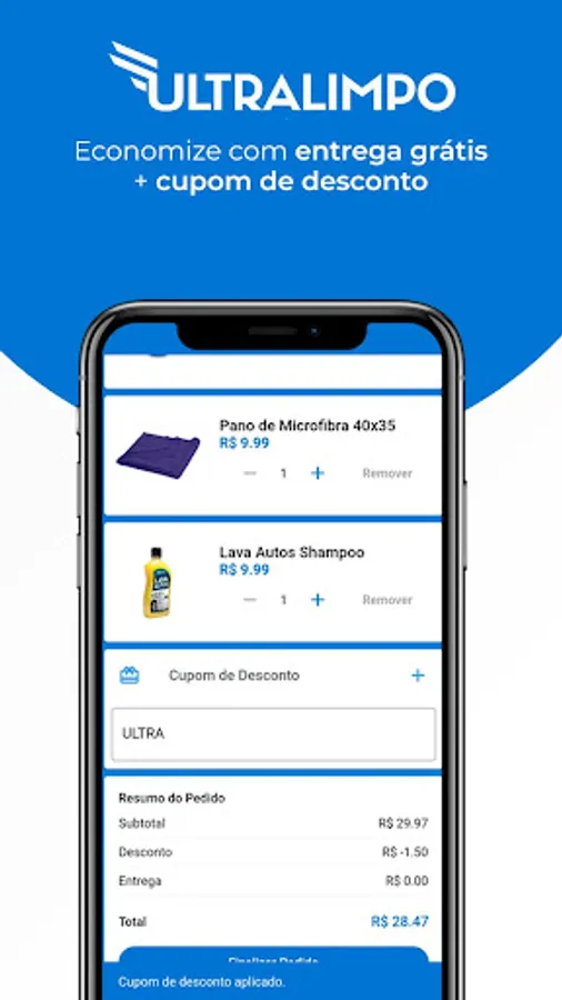 In the Ultralimpo app, you will find products for automotive aesthetics, home cleaning, machines, accessories and much more!