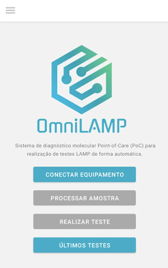 Application to control OmniLAMP equipment. Omni LAMP is a portable and low cost device, developed for the molecular diagnosis of pathogens. The detection of viral RNA occurs through isothermal amplification (LAMP Loop-mediated isothermal amplification) of the genetic material of the virus found in nasal and oropharyngeal swab samples, blood, saliva, urine, among others.