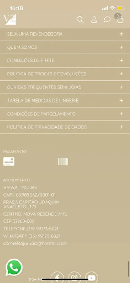 Always present in the main means of communication, VIZWAL MODAS has established itself in a prominent position in virtual commerce, based on a policy totally focused on the full satisfaction of its customers and commercial activity based on the most modern and luxurious in terms of FEMALE BEAUTY