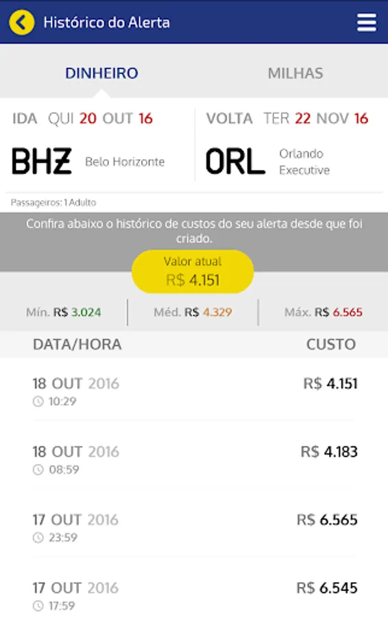 - Also follow the change in the cost of the ticket - average, minimum and maximum value - from the date you created the alert.