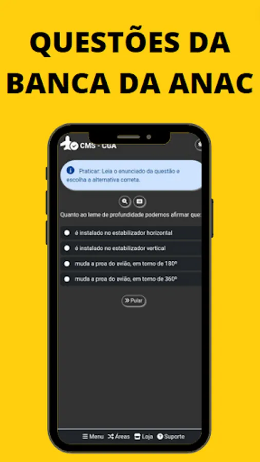 The Fly Simulated Pilot for pilots an application with objective questions of Meteorology, Technical Knowledge, Navigation, Air Traffic Regulations and Flight Theory.