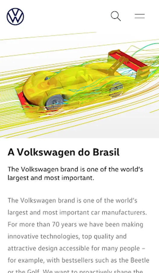 Volkswagen Brasil brings a new way of communicating with press professionals. digital influencers and brand enthusiasts. Through the VW News BR application you can access the most important news of the Volkswagen world through texts, videos and photos, as well as the contents of the brand's social media. In an interactive experience with Volkswagen, visitors can easily browse and share brand information in a few strokes.