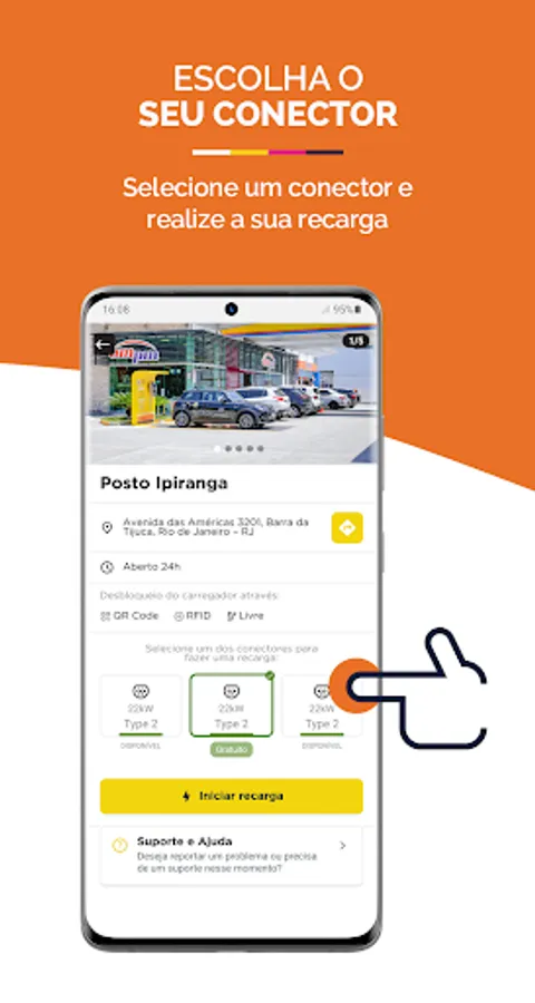 Recarga Elétrica Ipiranga came to support electric mobility in Brazil. Download our application and locate the Ipiranga network stations in an easy and practical way.