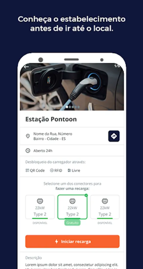 - Consult information about each charging station: opening hours, availability, existing plugs and charging prices.
