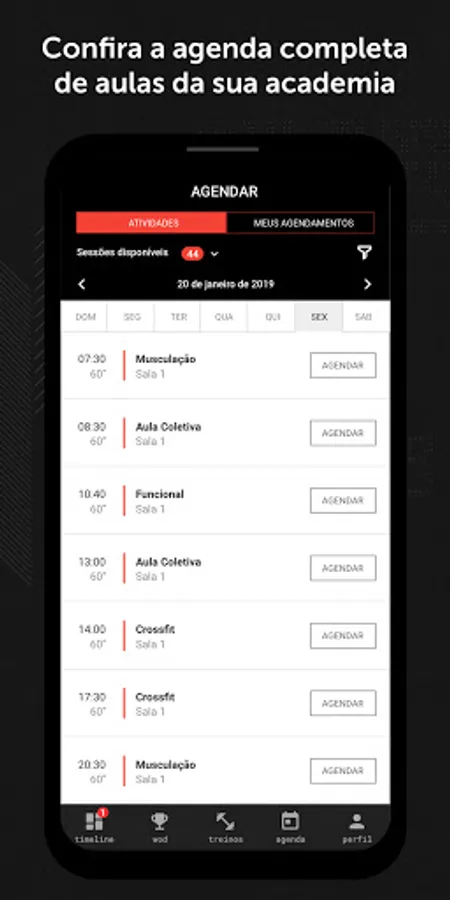 - Consult the SCHEDULE of classes: check in, check schedules, reserve a place in the room and, if the class you want is full, be notified as soon as you have a place available!