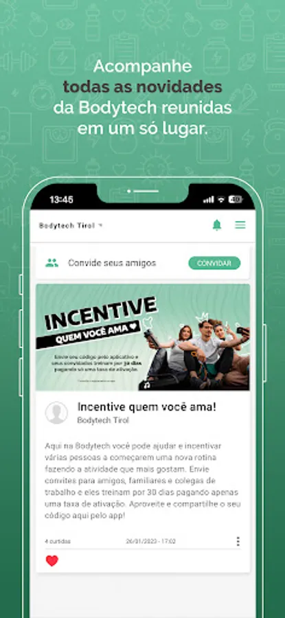The Bodytech application exists to facilitate your day to day as a customer. Enjoy all its benefits and don't train without our app!