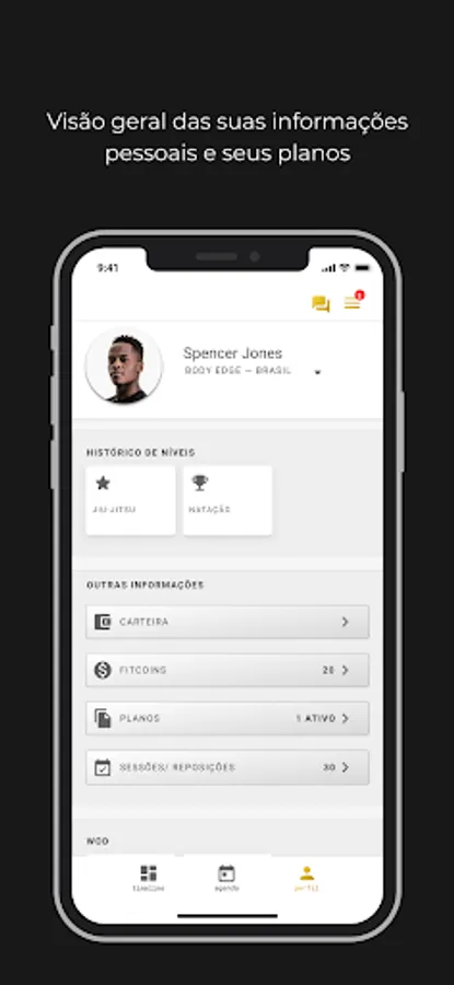 - Access your TRAININGS: information about exercises, loads, repetitions, execution tips and training expiration dates. Also consult your physical assessment whenever you want.