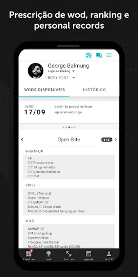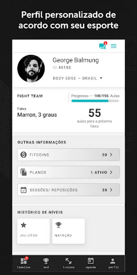 - Access your TRAINING: information about exercises, loads, repetitions, execution tips and training expiration. Also consult your physical assessment whenever you want.