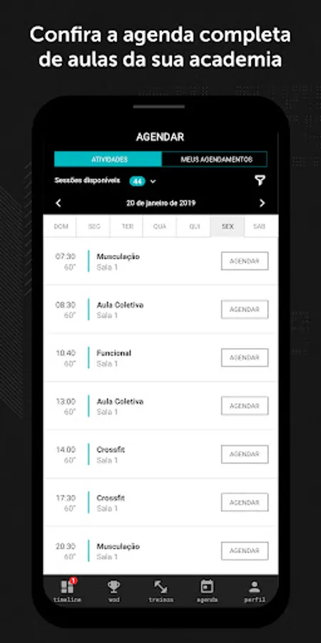 - Consult the schedule of classes: check-in, consult timetables, reserve a place in the room and, if the class you want is full, be notified as soon as there is a space available!