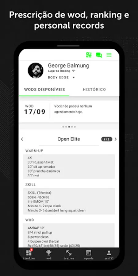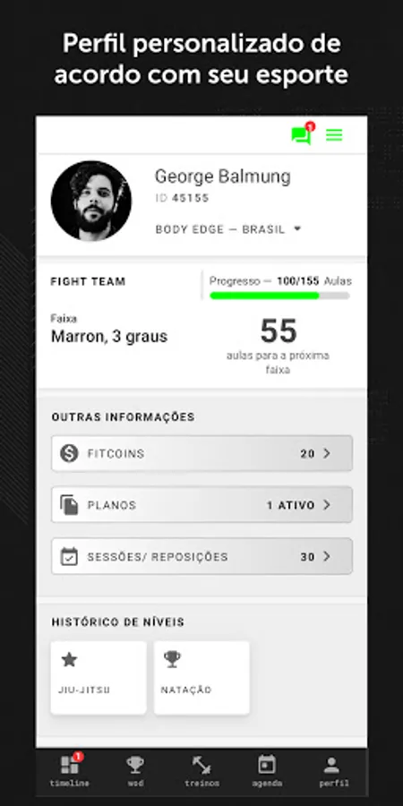 - Access your TRAINING: information about the exercises, loads, repetitions, execution tips and training expiration. Also consult your physical assessment whenever you want.