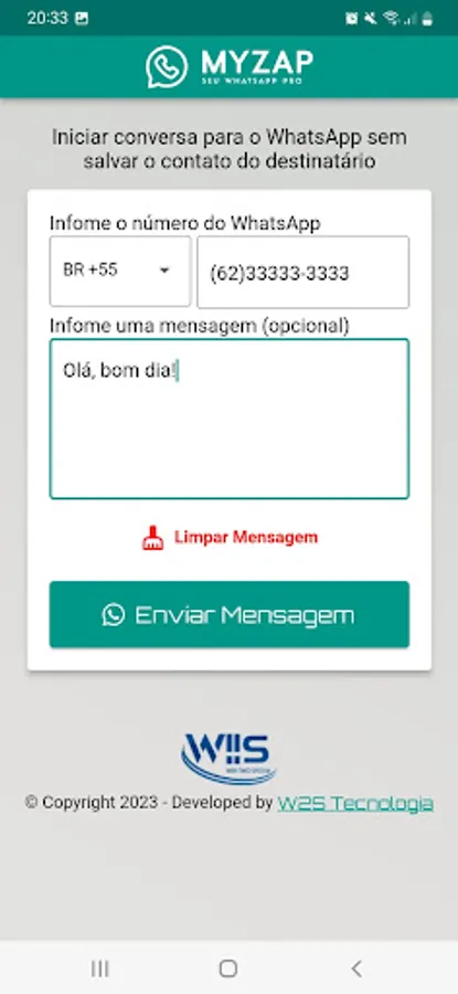 MyZap Pro is an application with additional features for the worldwide used WhatsApp chat. Bringing advanced features to facilitate the day to day of those who use chat. Version 1.0.0 of the initial release only includes the function of initiating a conversation without the need to save the contact of the recipient who will receive the message, but the idea is to launch new features frequently to become an indispensable application in people's lives in a way easy, simple and intuitive. Ideas, criticisms and suggestions are totally welcome. Contact us by email: lucasperes20@gmail.com