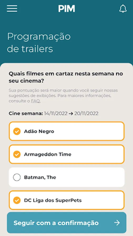 The Materials Incentive Program (PIM) is an incentive tool for theaters, based on engagement confirmation of receipt, installation and programming of both physical materials and trailers for films from Warner Bros. and Universal.