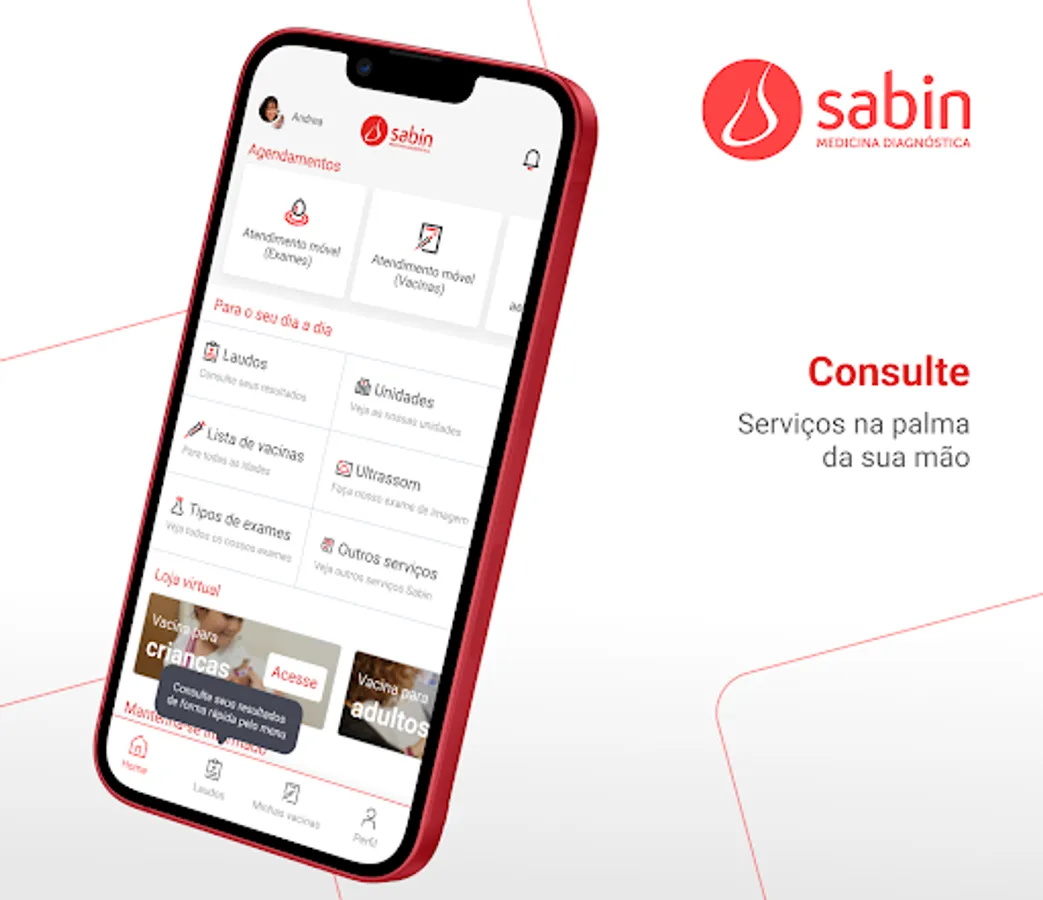 This is the Sabin Diagnostic Medicine app. By downloading it, you will be able to choose between two exclusive spaces: doctors or clients. As a customer, you will be able to access your exam results, those of your dependents, consult the nearest unit, access vaccination calendar, read health news and much more. Doctors, in turn, can follow the test results of their patients and know the latest news and information about tests.