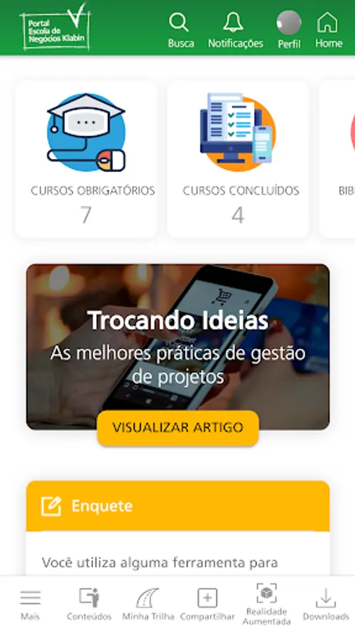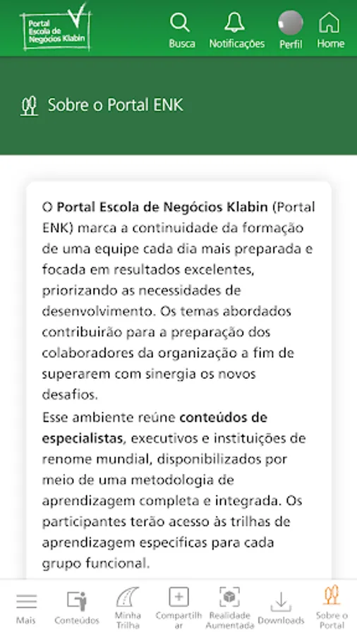 The Klabin Business School Portal (ENK Portal) marks the continuity of the formation of an increasingly prepared team focused on excellent results, prioritizing development needs. The topics covered will contribute to the preparation of the organization's employees in order to synergistically overcome the new challenges.