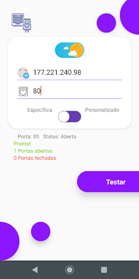 Port Test - With this tool, you can check your external IP address and detect which ports are open on your connection 🔍. This information is important to find out if the port is configured correctly or if any application or website is being blocked by a firewall 🚫. With this, it is easier to diagnose problems with the external connection of your apps, websites, games and others 🕹️.