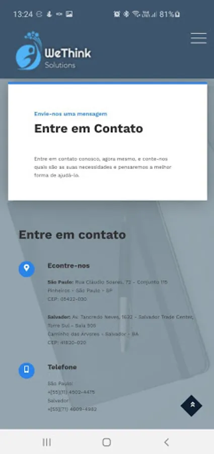 Take the WeThink Solutions website with you, so you can get information about the company at any time of the day or night.