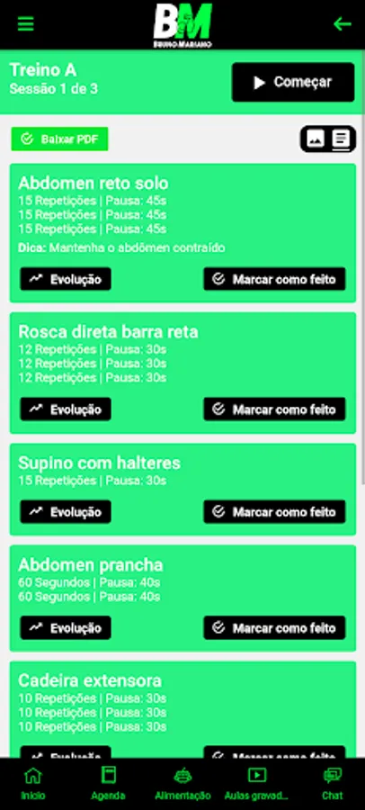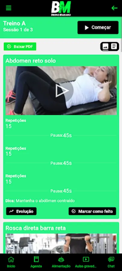 Online training application, access to details about training, you can watch videos of exercise execution, consult the schedule of training carried out, update the loads used during training, receive tips and information in the news feed.
