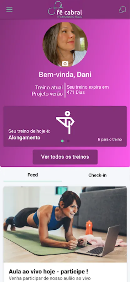 Online training application, access to details about training, you can watch videos of exercise execution, consult the schedule of training carried out, update the loads used during training, receive tips and information in the news feed.