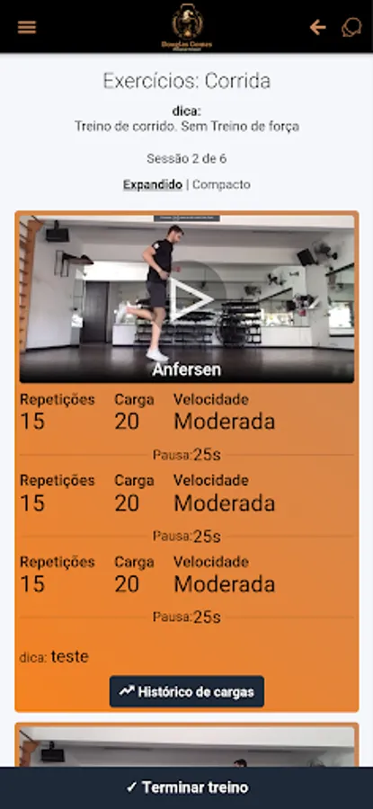 Online training application, access to details about training, you can watch videos of exercise execution, consult the schedule of training carried out, update the loads used during training, receive tips and information in the news feed.