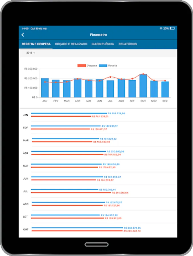 - View of the evolution of expenses by account and account group (Water, energy, contracts, maintenance, etc.) expenses;