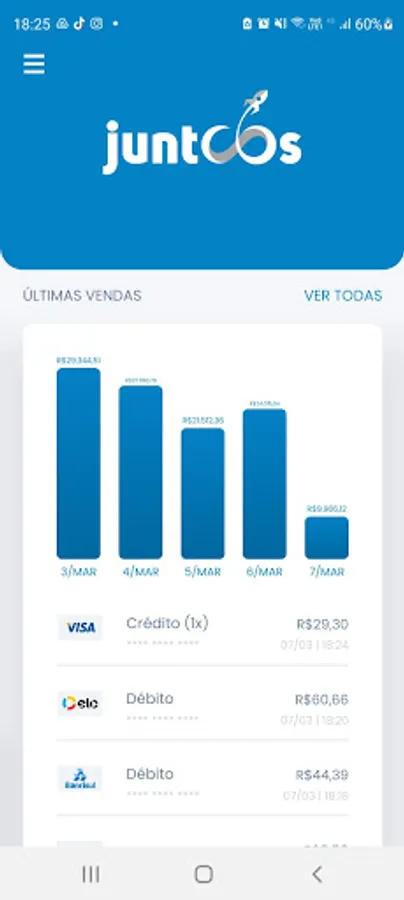 Juntoos is a complete electronic payment management platform. With our app, you can consult your sales and transaction details, access your financial statement, access your receivables schedule, our service and much more!