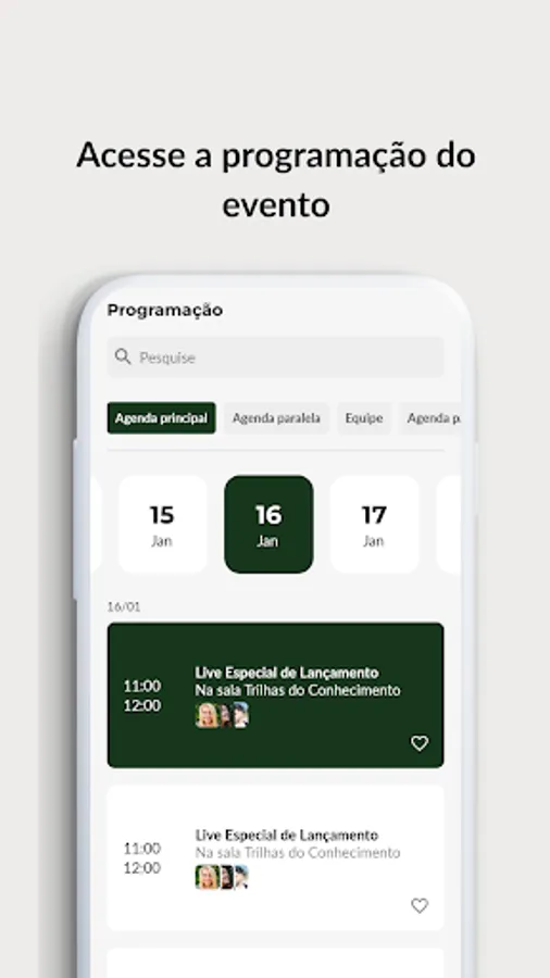 You will be able to make new contacts, send questions to the speakers, exchange messages with other participants, in short, interact with the community. In addition, you can consult the agenda, evaluate content, give feedback and answer quizzes. Use the APP and make the most of the features.