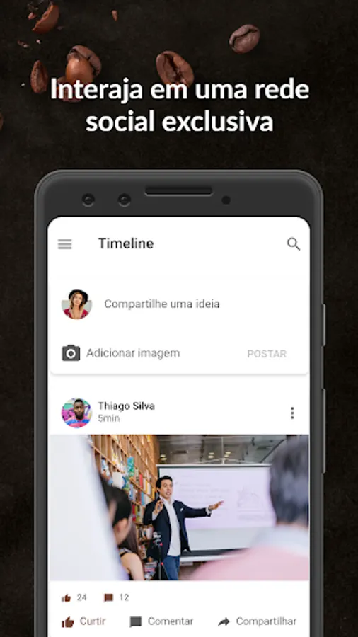 Through the FICAFE app, you can watch the entire event for free and also interact, make new contacts, send questions to speakers, publish, talk to exhibitors and exchange experiences with other participants. In addition, you can check the schedule, rate content, give feedback and participate in the event's gamification and interaction ranking, competing for prizes!