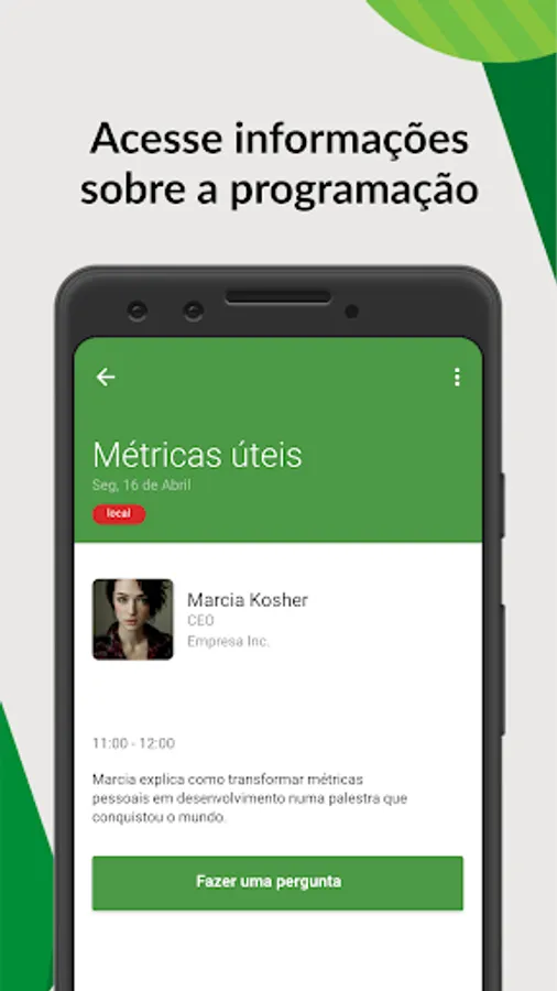 With the Somar People Forum app, you have access to a social network of the event, you can make new contacts, send questions to the speakers, exchange messages with other participants, in short, interact with the event. In addition, you can consult the schedule, evaluate content, give feedback, answer quizzes and carry out check-ins. Use the APP and make the most of the resources.