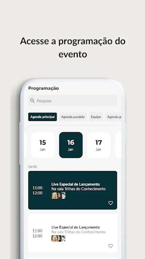 With the Semper Juntos application, you have access to an exclusive social network, you can make new contacts, send questions to speakers, exchange messages with other participants, in short, interact with the community. In addition, you can consult the schedule, evaluate content, give feedback and answer quizzes. Use the APP and make the most of the features.