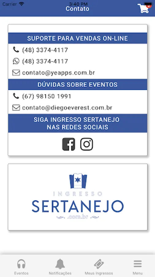 Ingresso Sertanejo is the 1st Exclusive Online Ticket Sales solution for Sertanejo Events in Brazil, With an innovative concept we have been able to simplify the relationship between the Event Producer and His Client via Push notification, E-mail Marketing with full control of Sales and total user safety. We have an extremely secure and efficient sales platform guaranteeing perfect ticket management for whatever the size of your event.