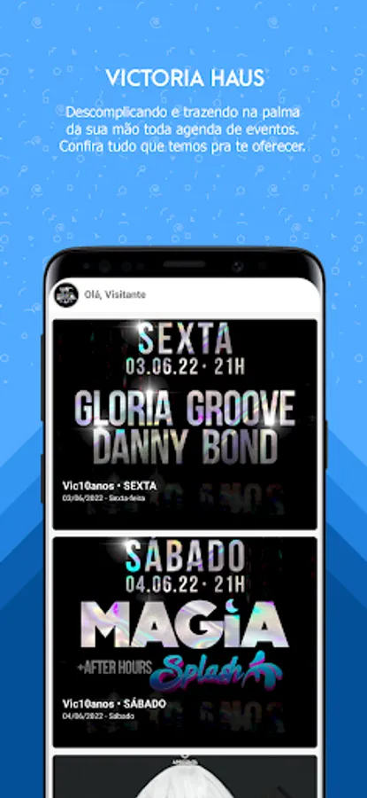 Victoria Haus innovates by offering, in a single app, the complete agenda of its upcoming events with an easy and practical ticketing system, bonuses and amenities. Just register once and keep the application installed on your smartphone. Online sales are simple, using a credit card linked to your profile. Now just choose the party and generate your electronic ticket. Present it on your cell phone at the entrance and have easy access and without queues. Keep the app installed to receive our notices and news
