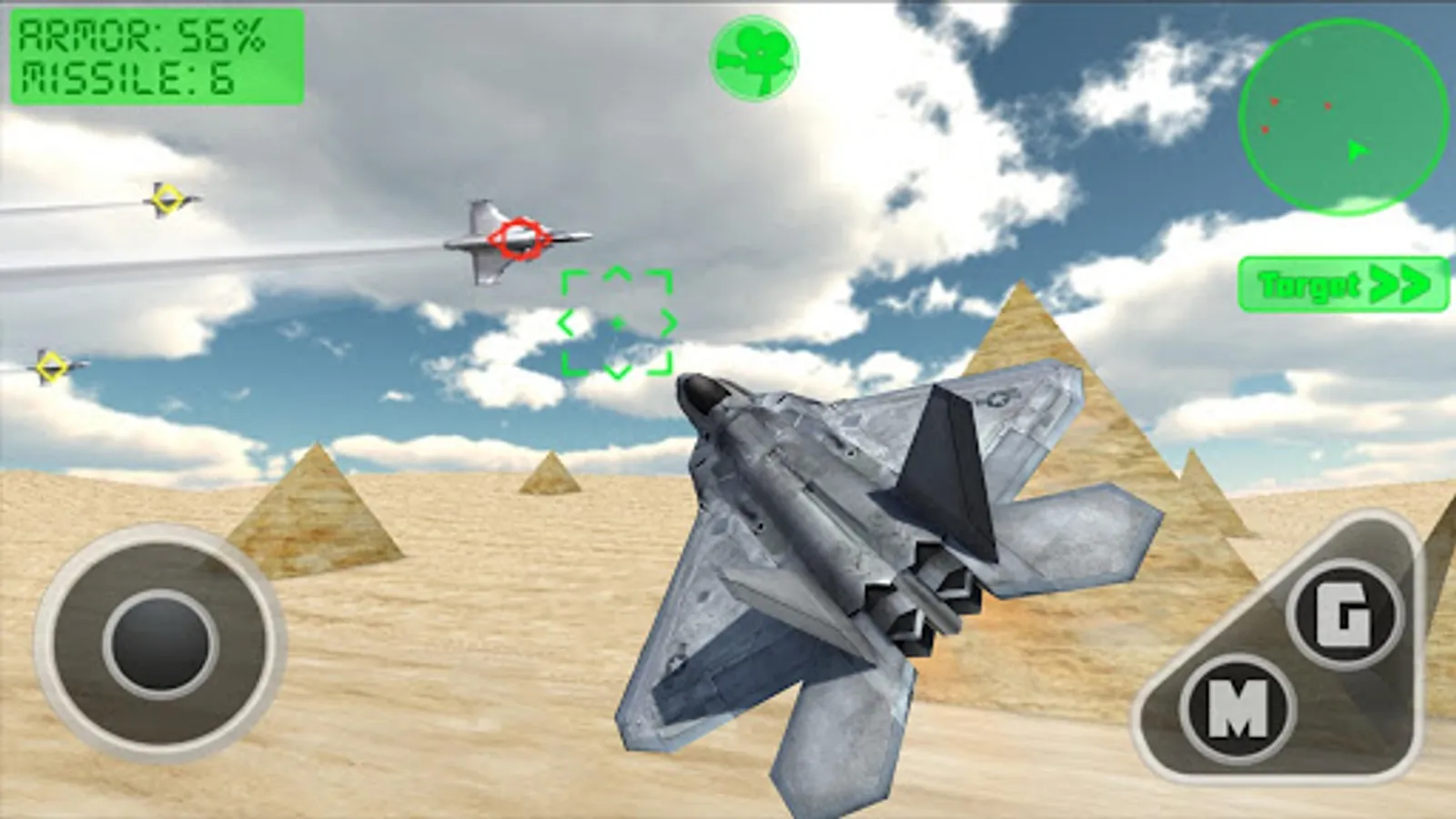 Fly your F22 Fighter through a very realist Egypt scenery that you ever saw against helicopters, F17, F117 and S37.