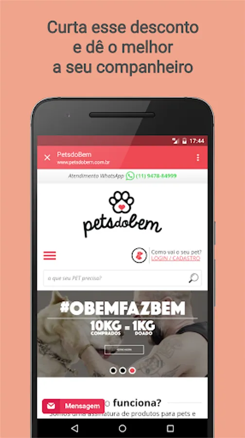 My Pet has a partnership with PetsdoBem, and with that you get a discount³ on your first purchase on the site, which in addition to food has several products for your pet.