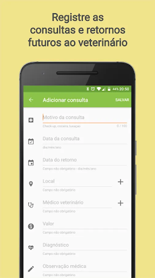 - Register your pets (basic pet data, such as name, species, breed, ...).