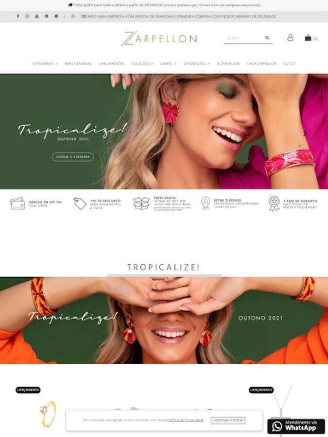 Zarpellon is one of the largest brands for wholesale resale in the silver, steel and plated jewelry sector in Brazil. Our products are only intended for resale in the retail sector. Our products are available in our Online Wholesale, in addition to showrooms and distributors throughout Brazil.