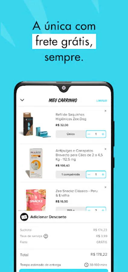O app conta com as principais marcas do mercado, como Zee.Dog, Golden, Premier, Royal Canin, Bravecto, Super Secão, entre outras. São mais de 3.000 itens e diversas opções de alimentos, remédios, produtos higiênicos, brinquedos, acessórios e muito mais. Tudo isso na palma da sua mão.Com o app da Zee.Now, você pode: