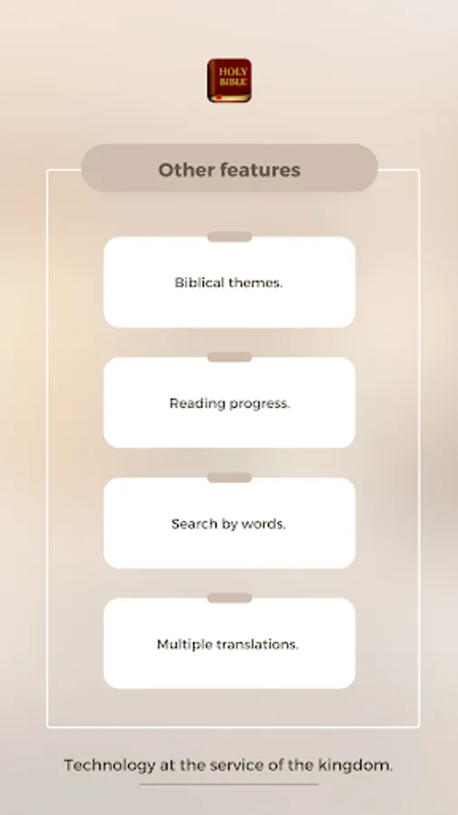 Have the faithful version of the physical Bible with our Holy Bible app.