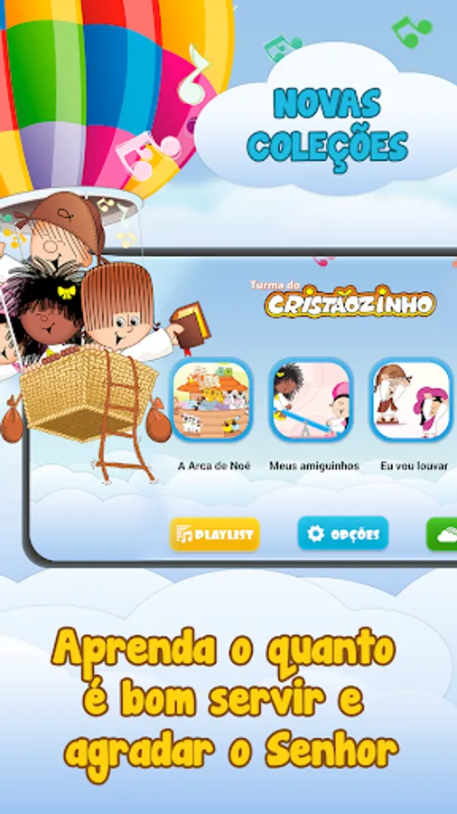 The Turma do Cristãozinho is made up of super fun characters, who during their adventures demonstrate values such as friendship, family, education, love, forgiveness, morals, respect for others and follow their games in an educational way, based on the faith and guidance of Jesus .