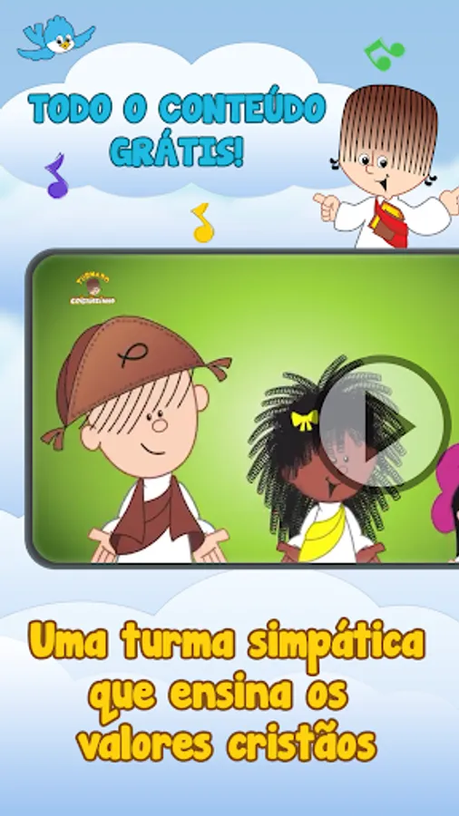 Animated music videos from Turma do Cristãozinho with themes that address values such as: love, respect for others, family and friendship. Taking the word of Jesus to the little ones.