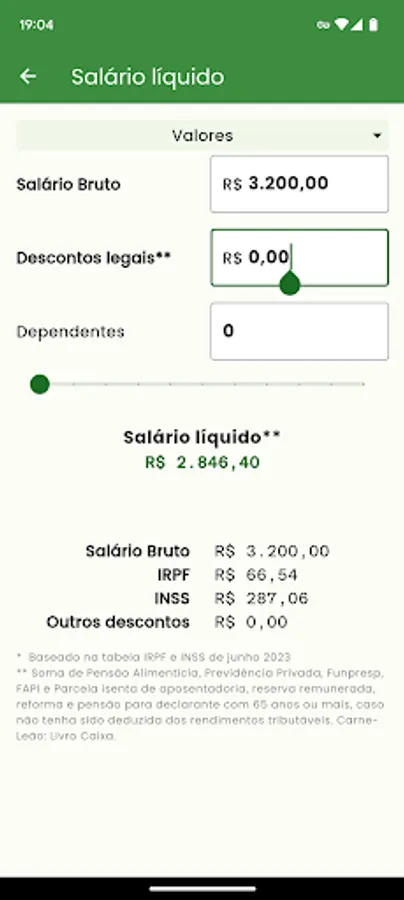 • Calculate Net Salary, with INSS and IRPF discounts.