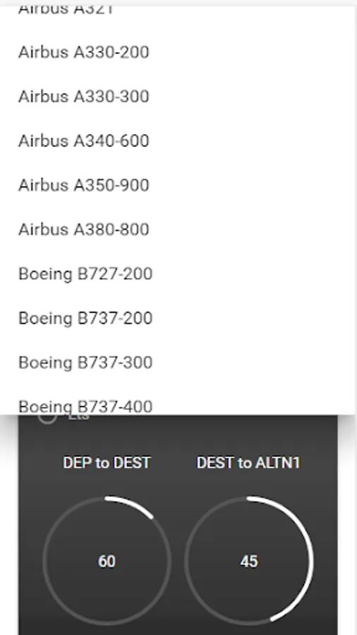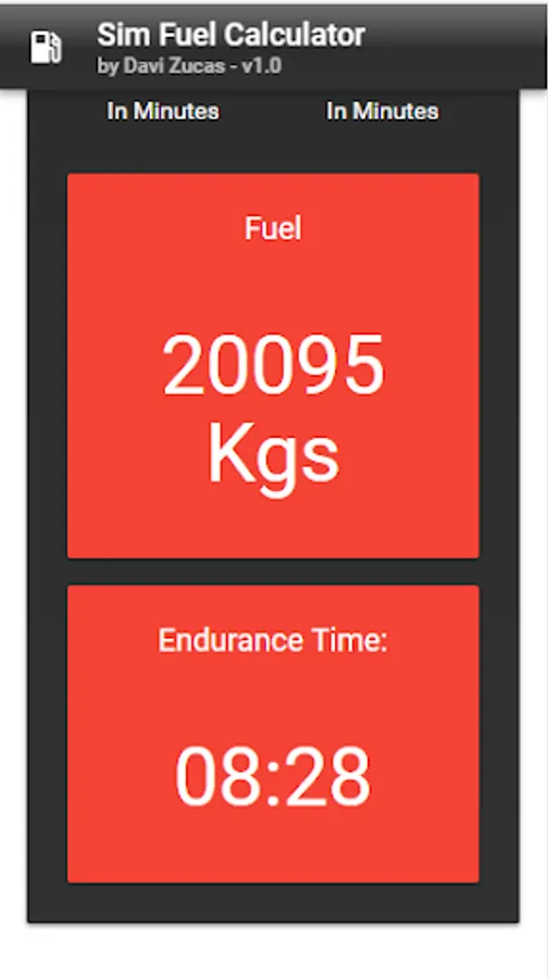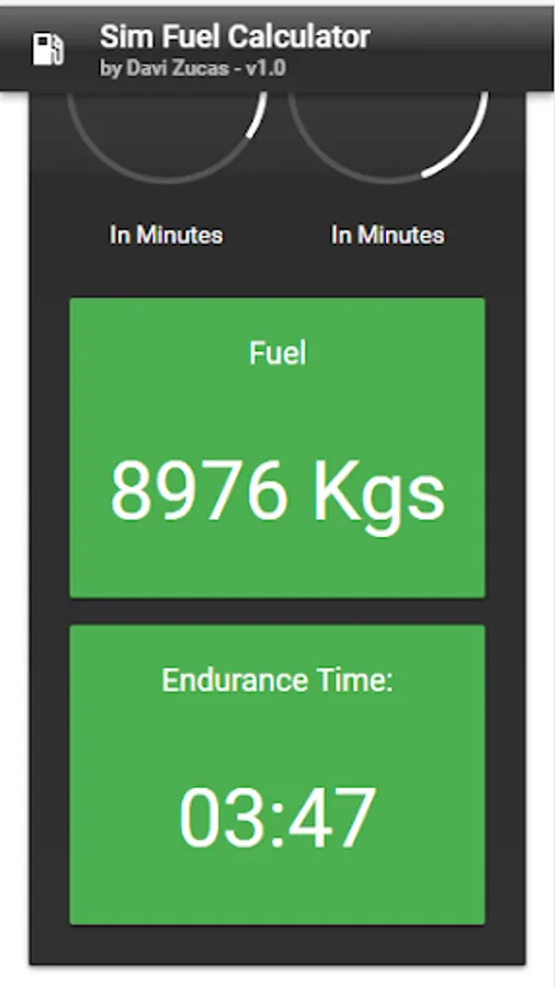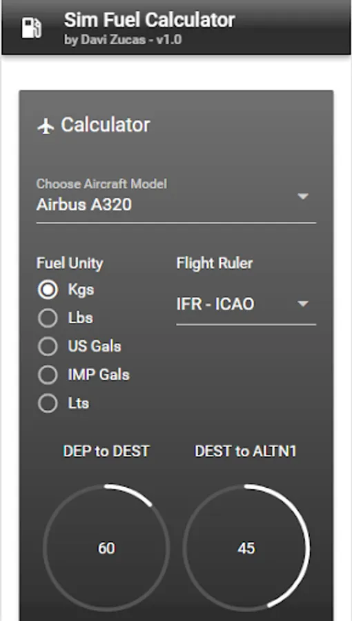 Select your aircraft (check the list on final), trip enroute time, kind of flight rules (IFR - ICAO, VFR day light / VFR night light) and the unity (Kgs, Lbs, Lts, Us Gal or Imp Gal) and see the minimum fuel required and total endurance time.