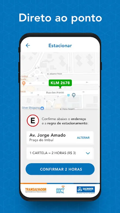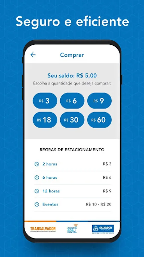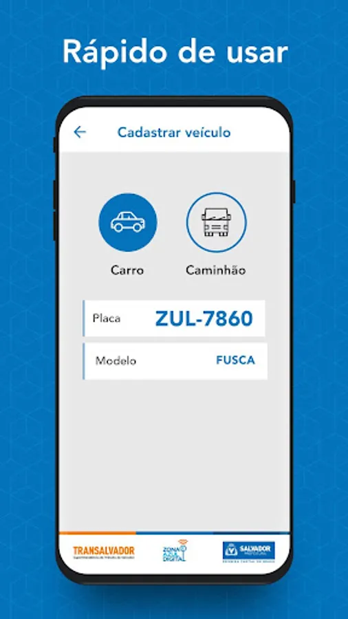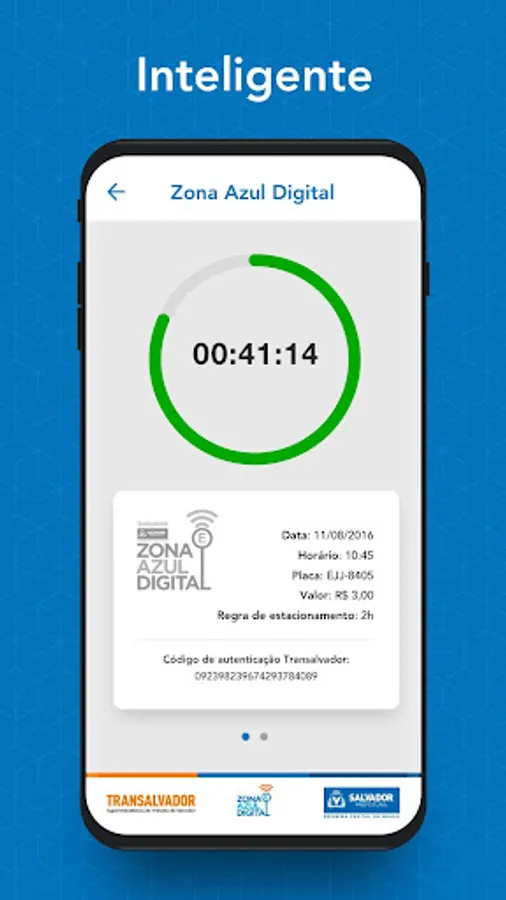 Every detail of the App has been designed to make the purchase process of the Cartela de Zona Azul Digital and use of the Zona Azul Salvador vacancies super simple , practical , easy < / b> and secure .