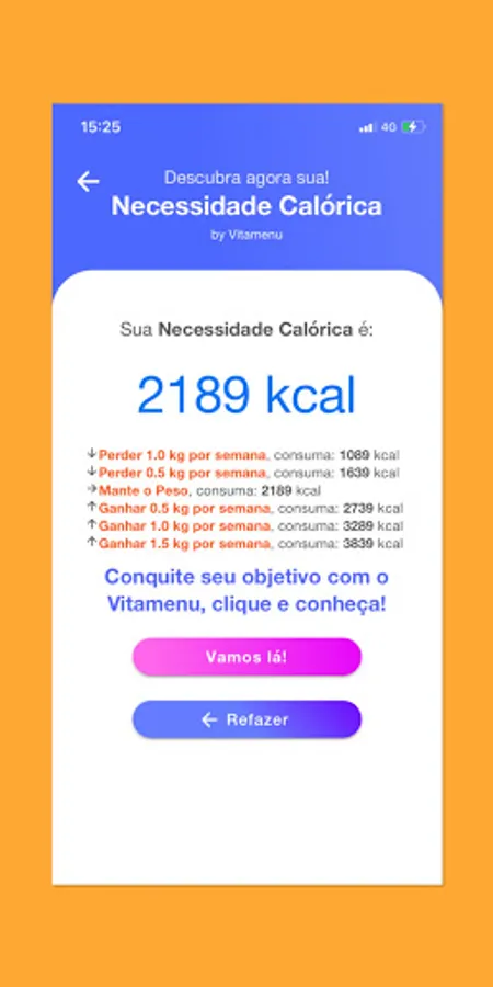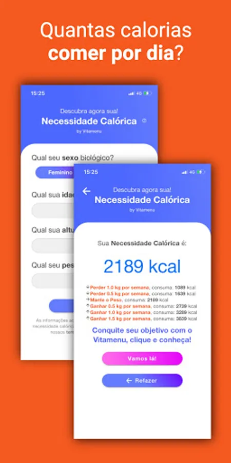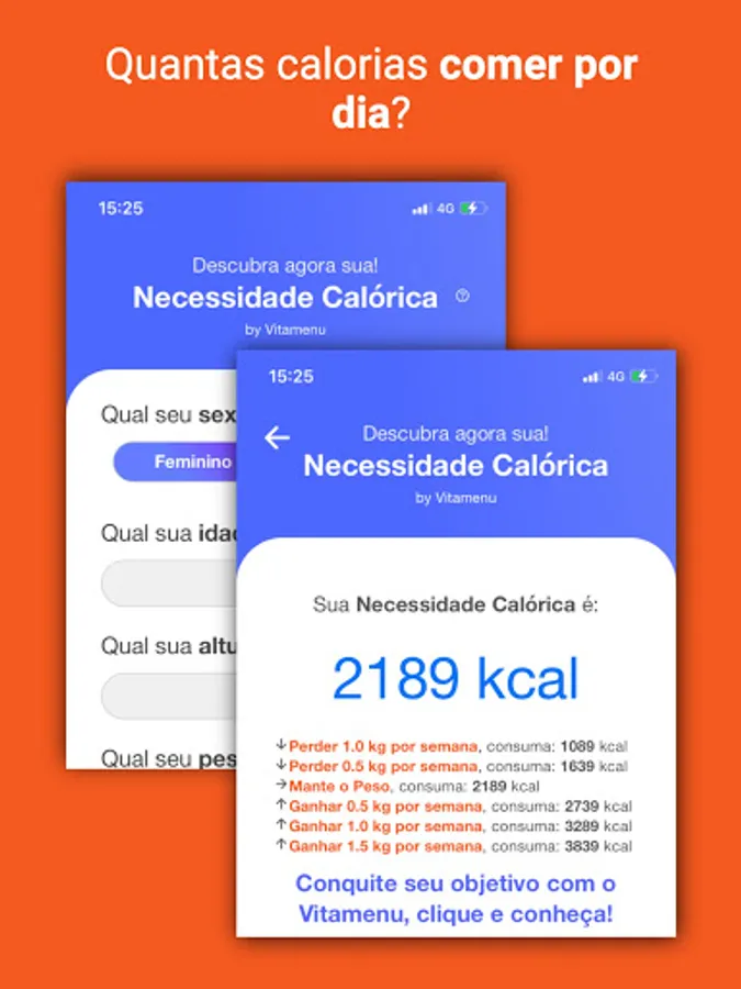 This app helps you to know how many calories to eat to maintain, lose weight or gain mass.