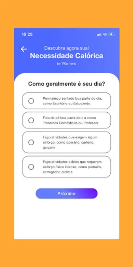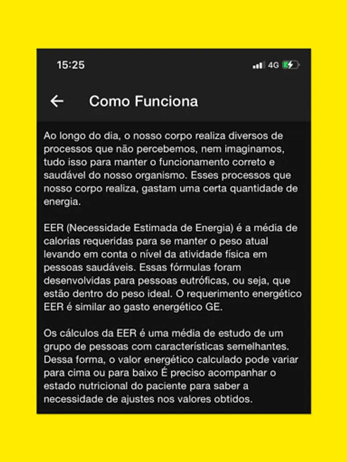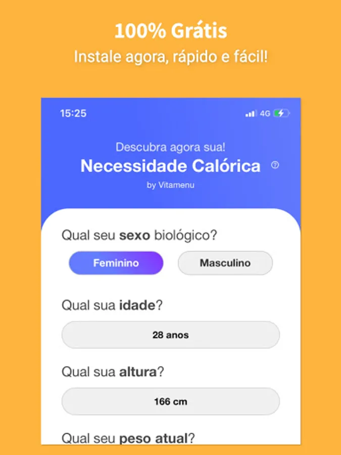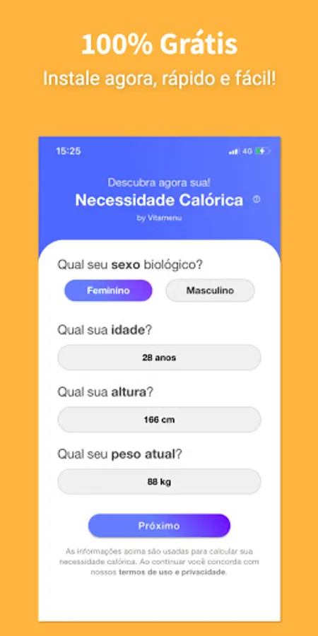The nutritional recommendations proposed by the Institute of Medicine created equations to calculate the energy requirement using specific formulas. This app calculates all of this for you, just enter your height, current age, weight and physical activity.