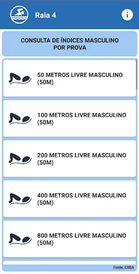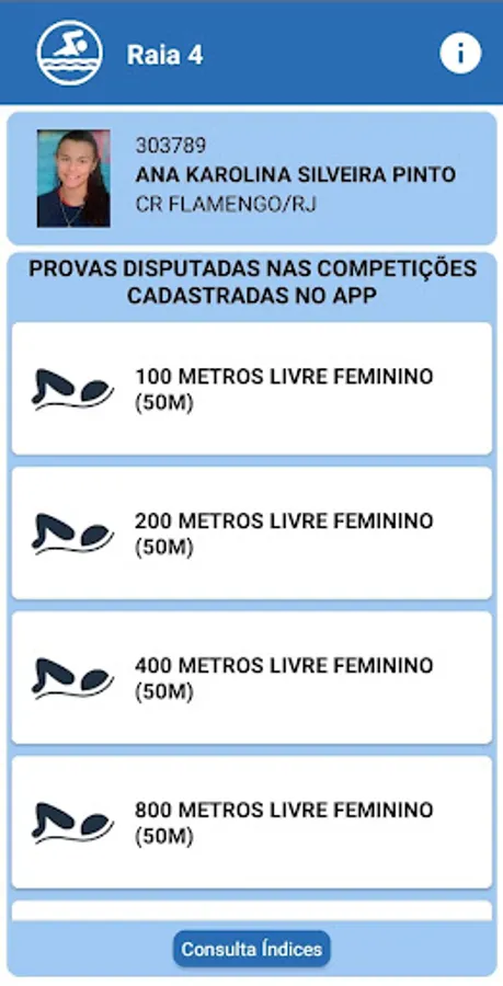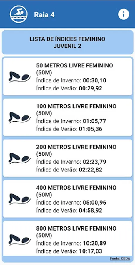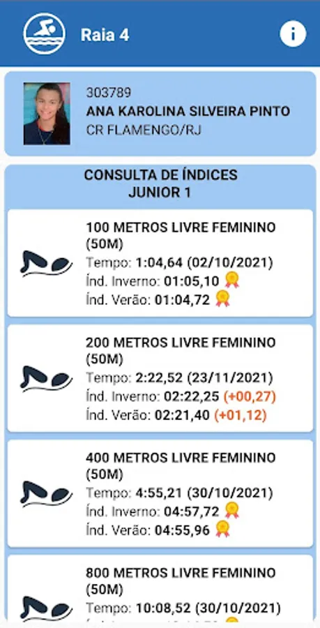 Raia 4 aims to assist swimming athletes in consulting the times obtained in the competitions in which they participated.